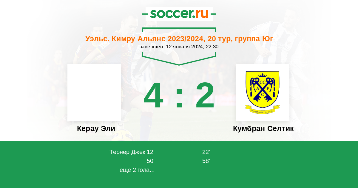 Керау Эли - Кумбран Селтик: обзор матча 12 января 2024