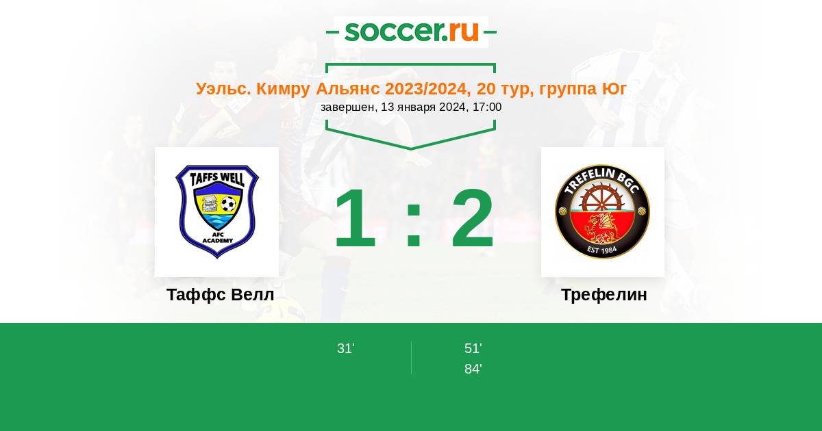 Таффс Велл - Трефелин: обзор матча 13 января 2024