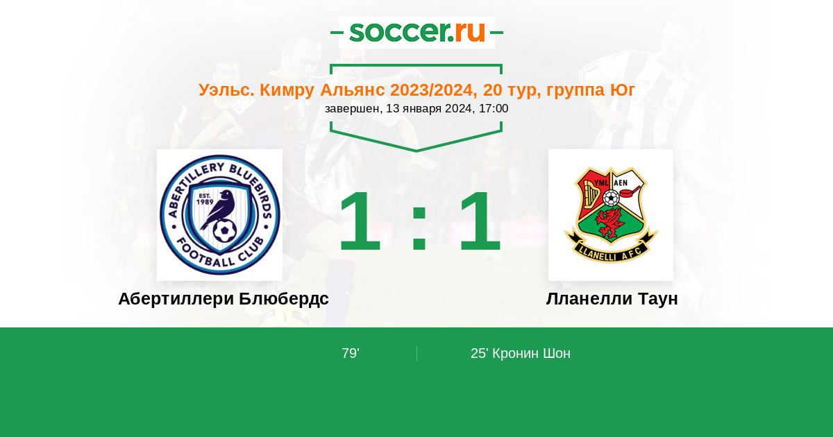 Абертиллери Блюбердс - Лланелли Таун: обзор матча 13 января 2024