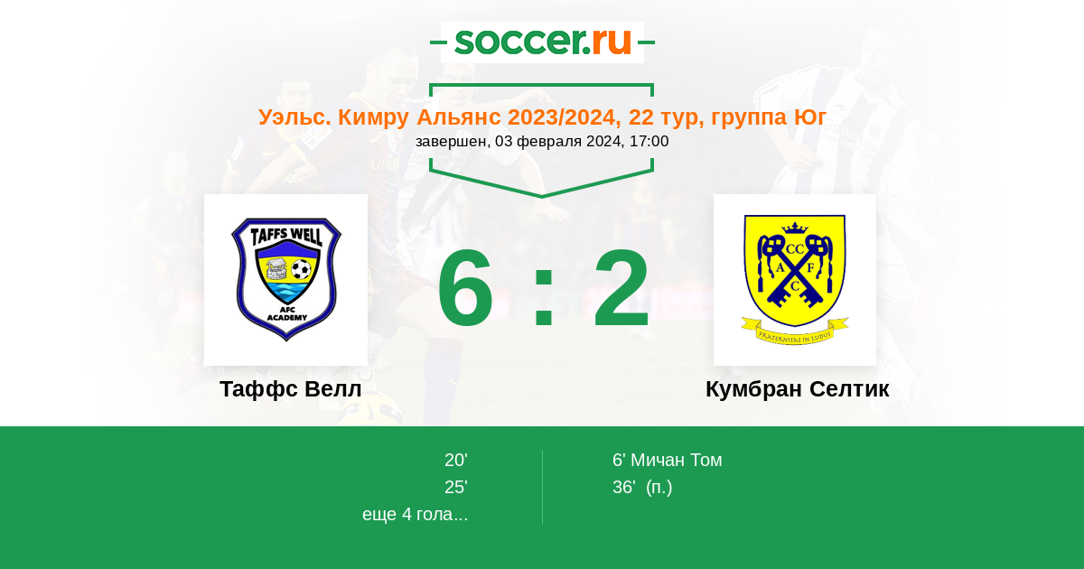 Таффс Велл - Кумбран Селтик: обзор матча 3 февраля 2024