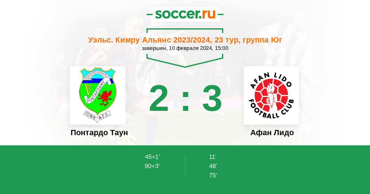 Понтардо Таун - Афан Лидо: обзор матча 10 февраля 2024