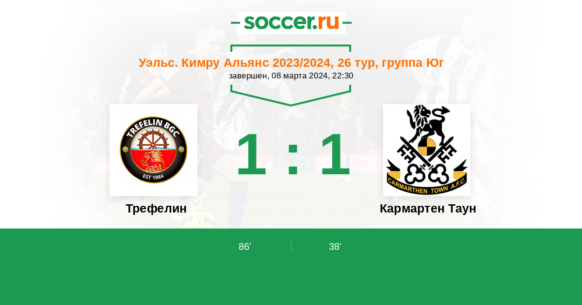 Трефелин - Кармартен Таун: обзор матча 8 марта 2024