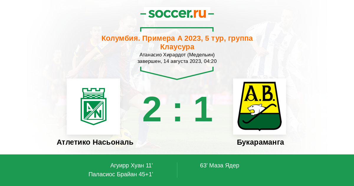 Атлетико Насьональ - Букараманга: обзор матча 14 августа 2023