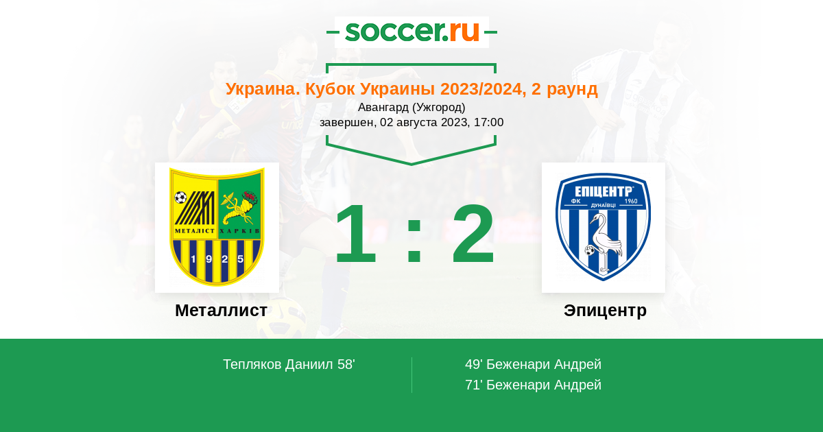 Металлист - Эпицентр: обзор матча 2 августа 2023