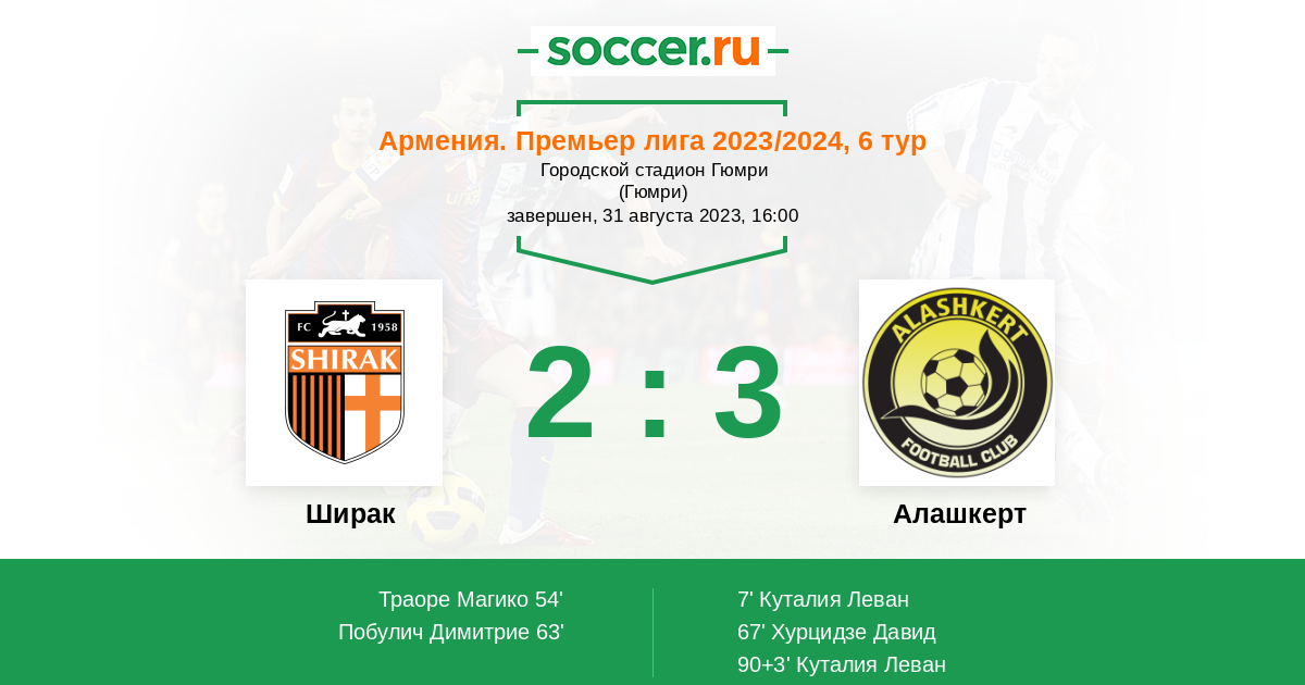 Ширак - Алашкерт: обзор матча 31 августа 2023