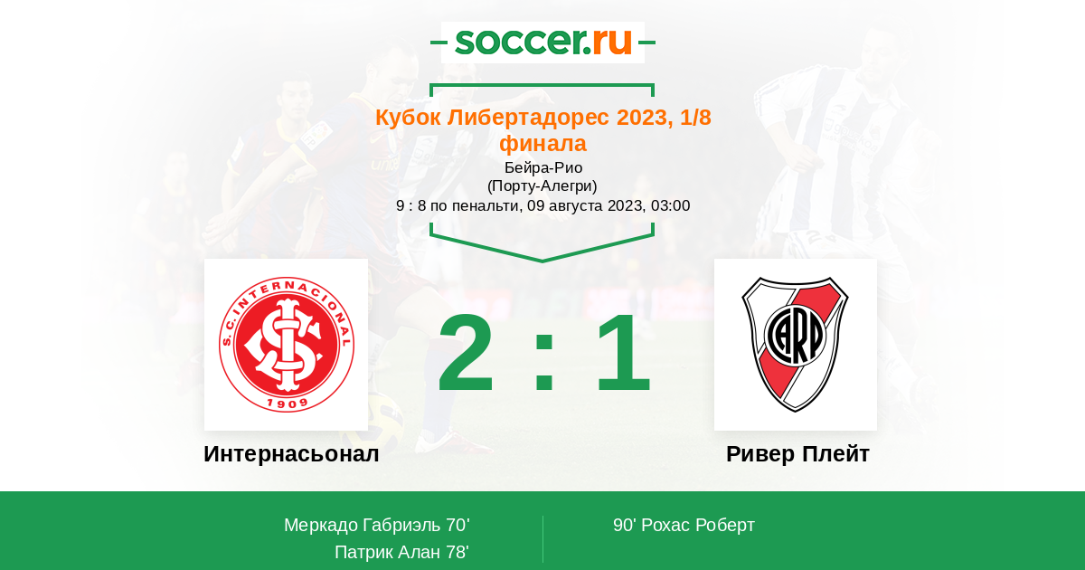 Интернасьонал - Ривер Плейт: обзор матча 9 августа 2023
