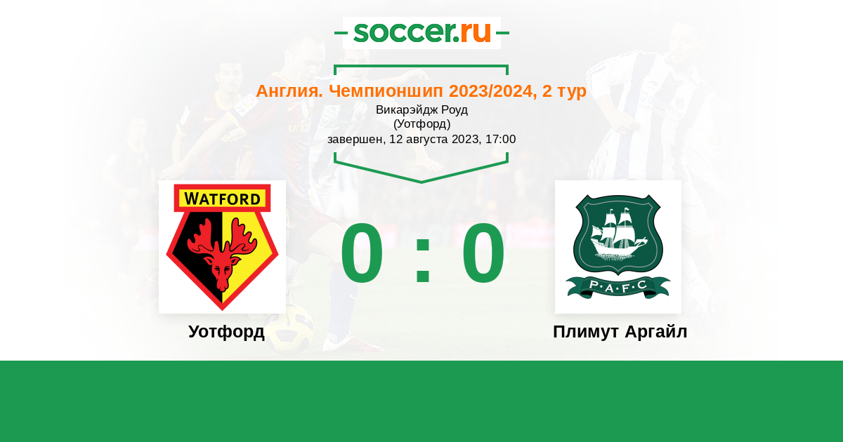 Уотфорд - Плимут Аргайл: обзор матча 12 августа 2023