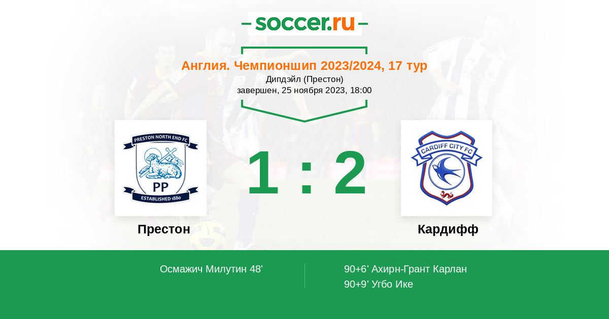 Престон - Кардифф: обзор матча 25 ноября 2023