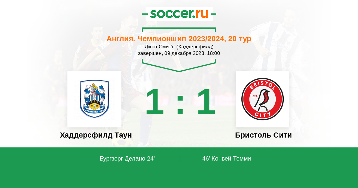 Хаддерсфилд Таун - Бристоль Сити: обзор матча 9 декабря 2023