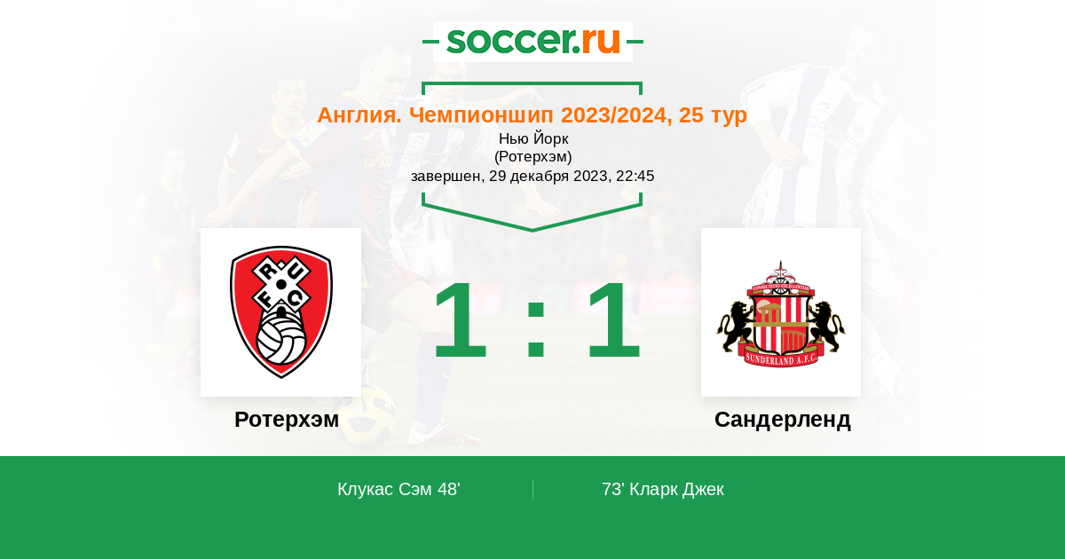 Ротерхэм - Сандерленд: обзор матча 29 декабря 2023