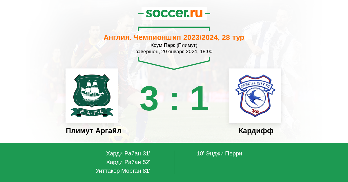 Плимут Аргайл - Кардифф: обзор матча 20 января 2024