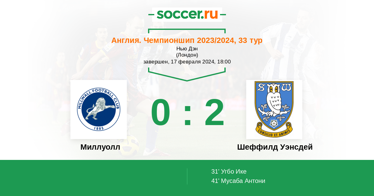 Миллуолл - Шеффилд Уэнсдей: обзор матча 17 февраля 2024