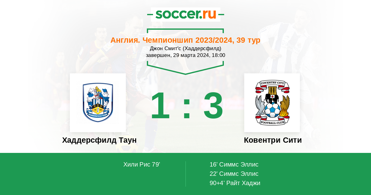 Хаддерсфилд Таун - Ковентри Сити: обзор матча 29 марта 2024