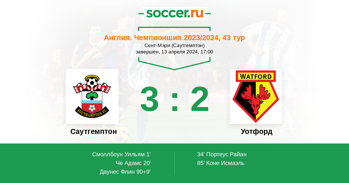 Саутгемптон - Уотфорд: обзор матча 13 апреля 2024