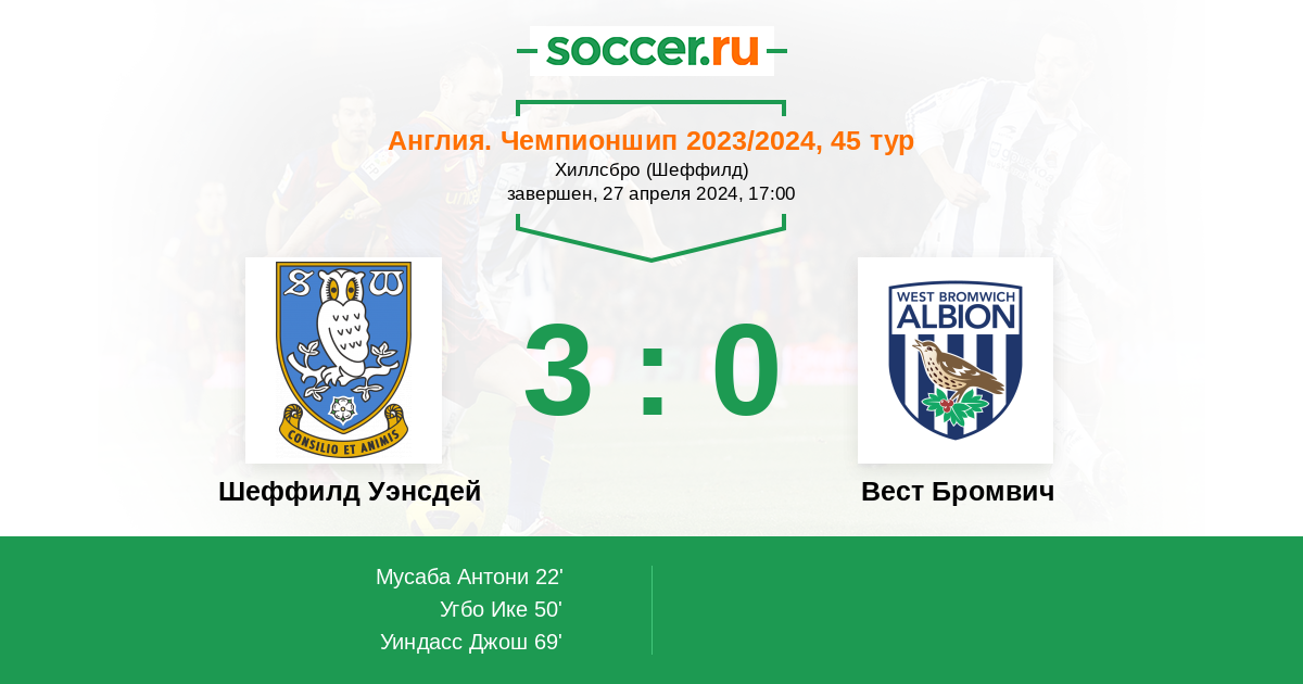 Шеффилд Уэнсдей - Вест Бромвич: обзор матча 27 апреля 2024