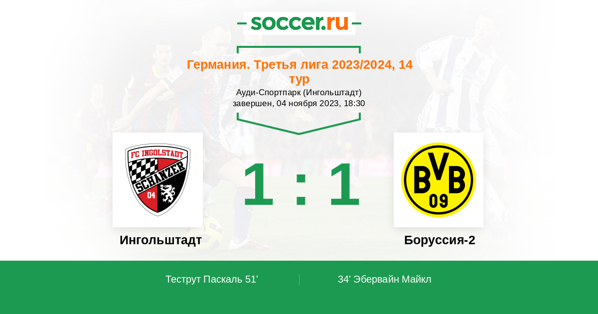 Ингольштадт - Боруссия-2: обзор матча 4 ноября 2023