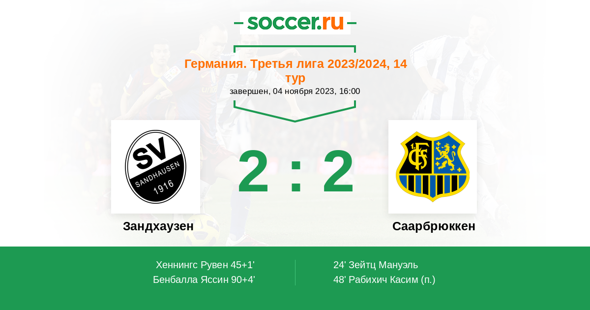 Зандхаузен - Саарбрюккен: обзор матча 4 ноября 2023