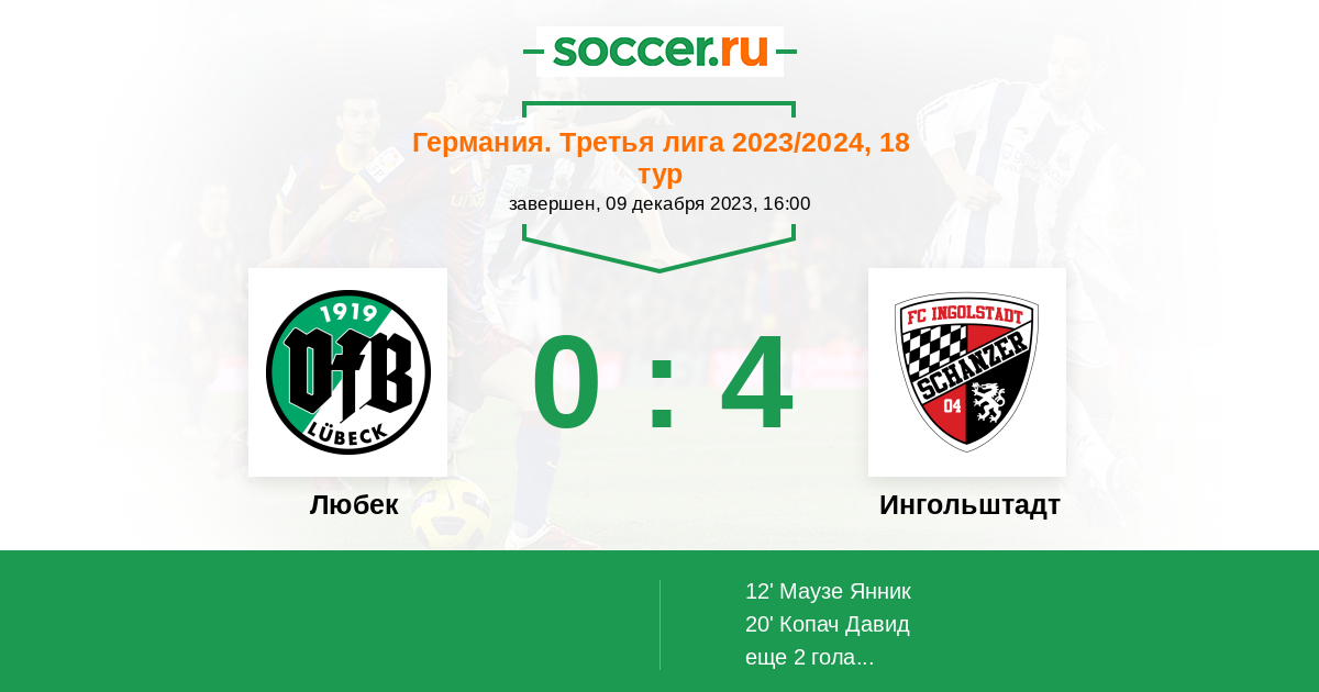 Любек - Ингольштадт: обзор матча 9 декабря 2023