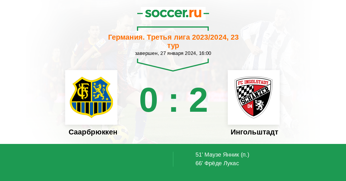 Саарбрюккен - Ингольштадт: обзор матча 27 января 2024