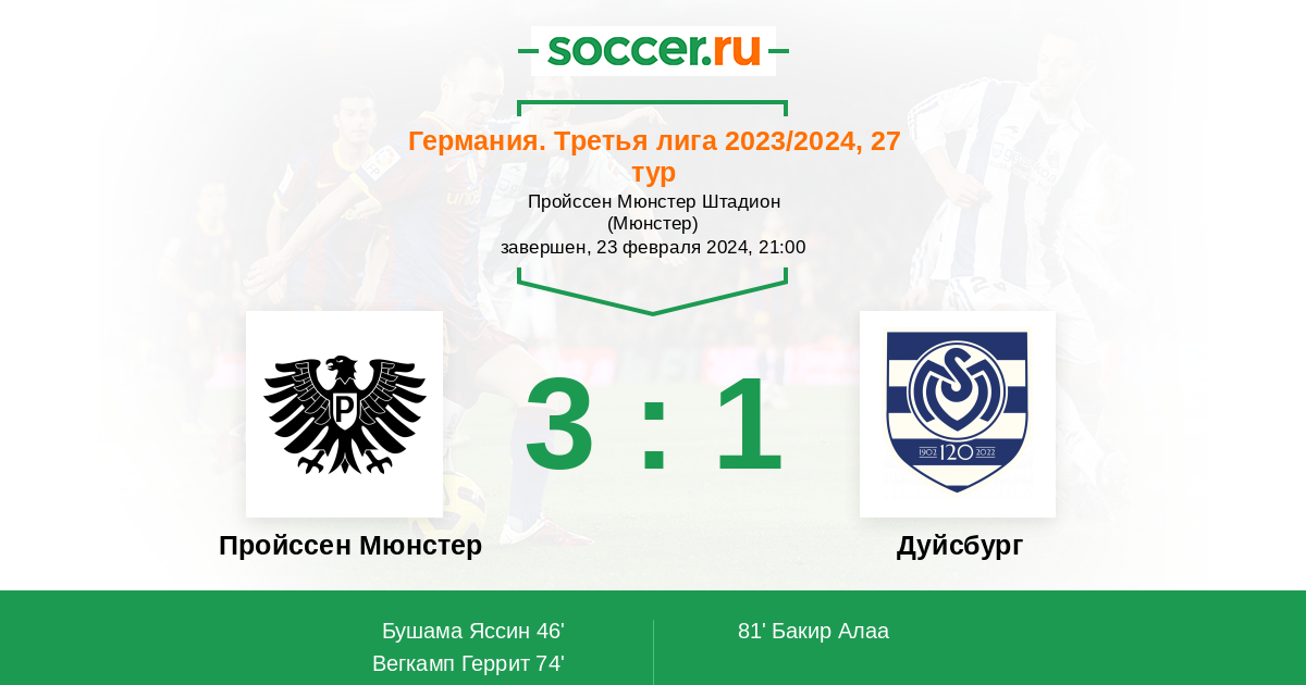 Пройcсен Мюнстер - Дуйсбург: обзор матча 23 февраля 2024