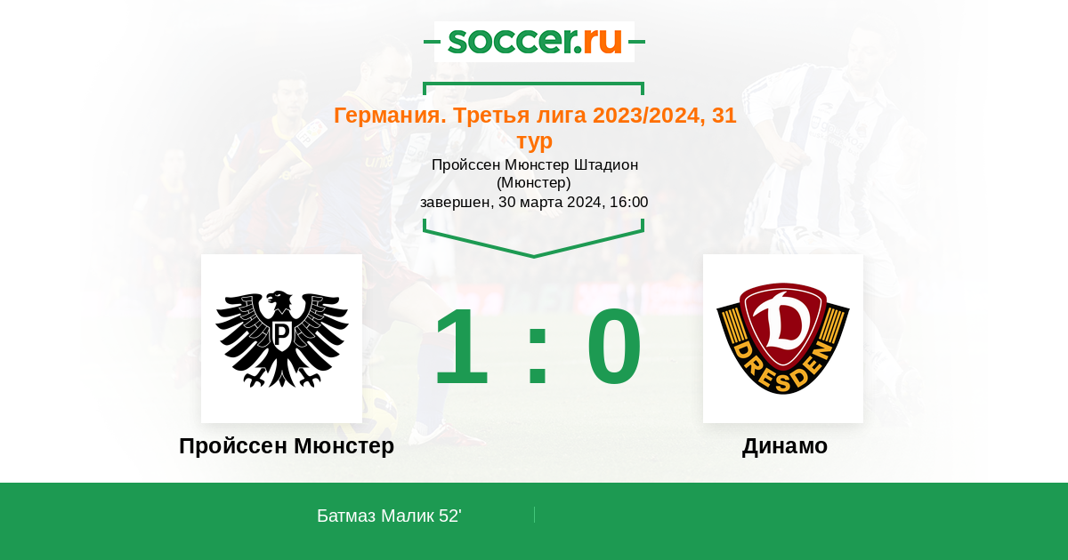Пройcсен Мюнстер - Динамо: обзор матча 30 марта 2024