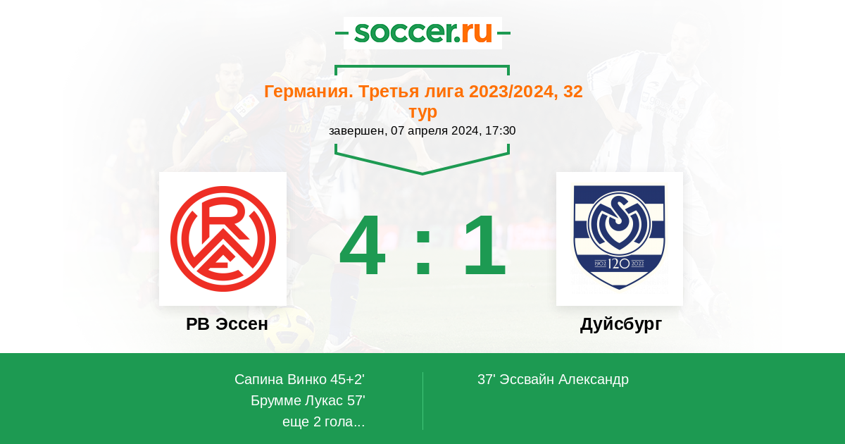 РВ Эссен - Дуйсбург: обзор матча 7 апреля 2024