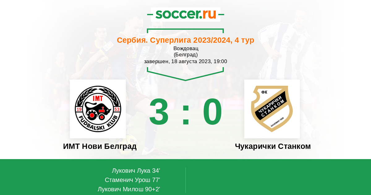 ИМТ Нови Белград - Чукарички Станком: обзор матча 18 августа 2023