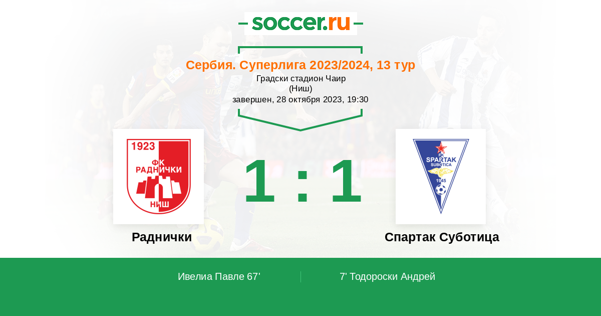 Раднички - Спартак Суботица: обзор матча 28 октября 2023