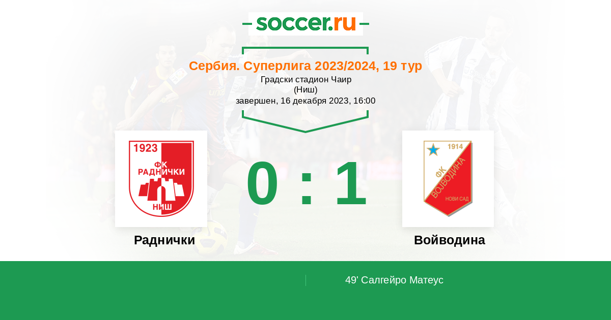 Раднички - Войводина: обзор матча 16 декабря 2023