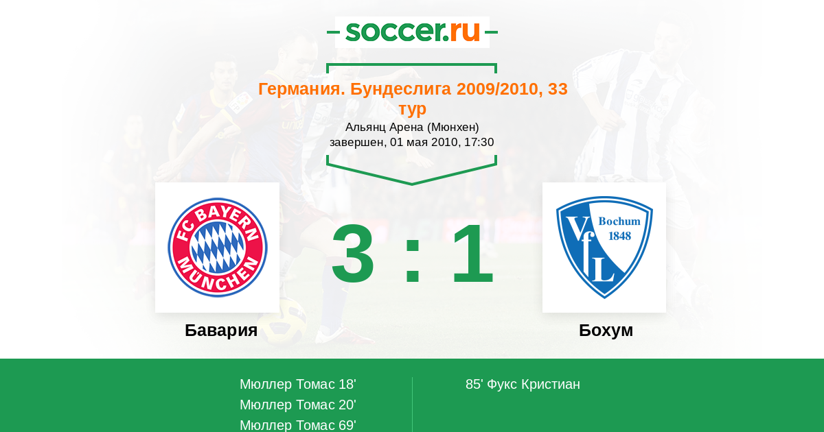 Бавария - Бохум: обзор матча 1 мая 2010