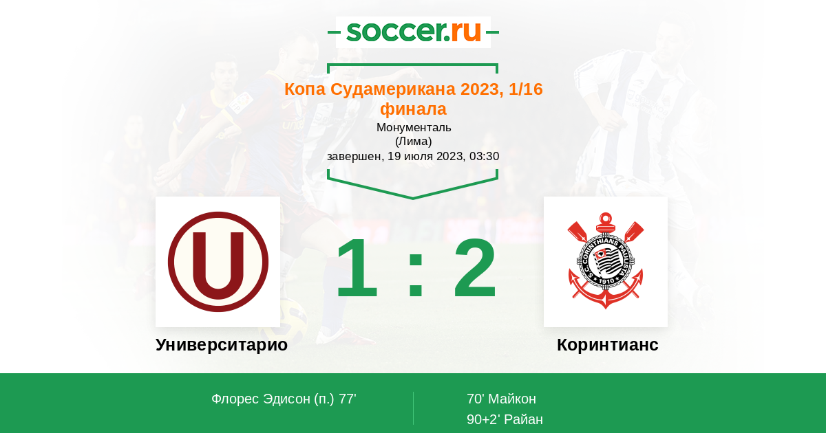 Университарио - Коринтианс: обзор матча 19 июля 2023