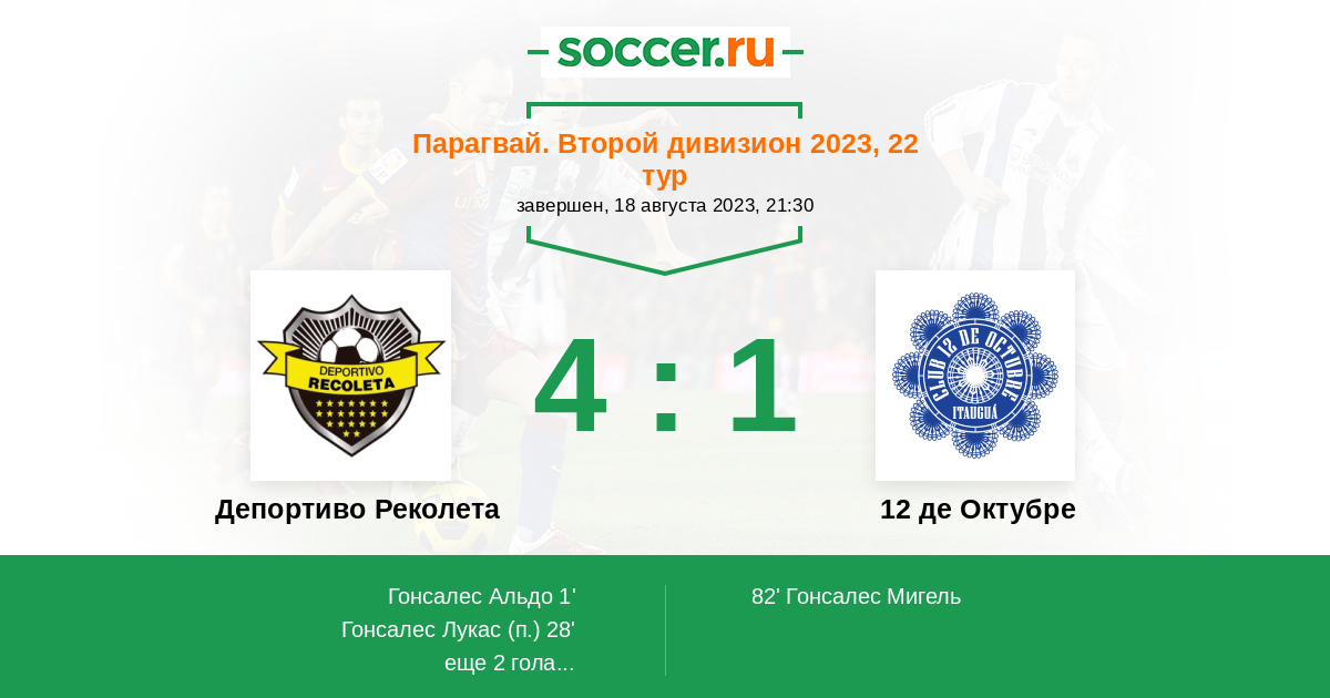 Депортиво Реколета - 12 де Октубре: обзор матча 18 августа 2023