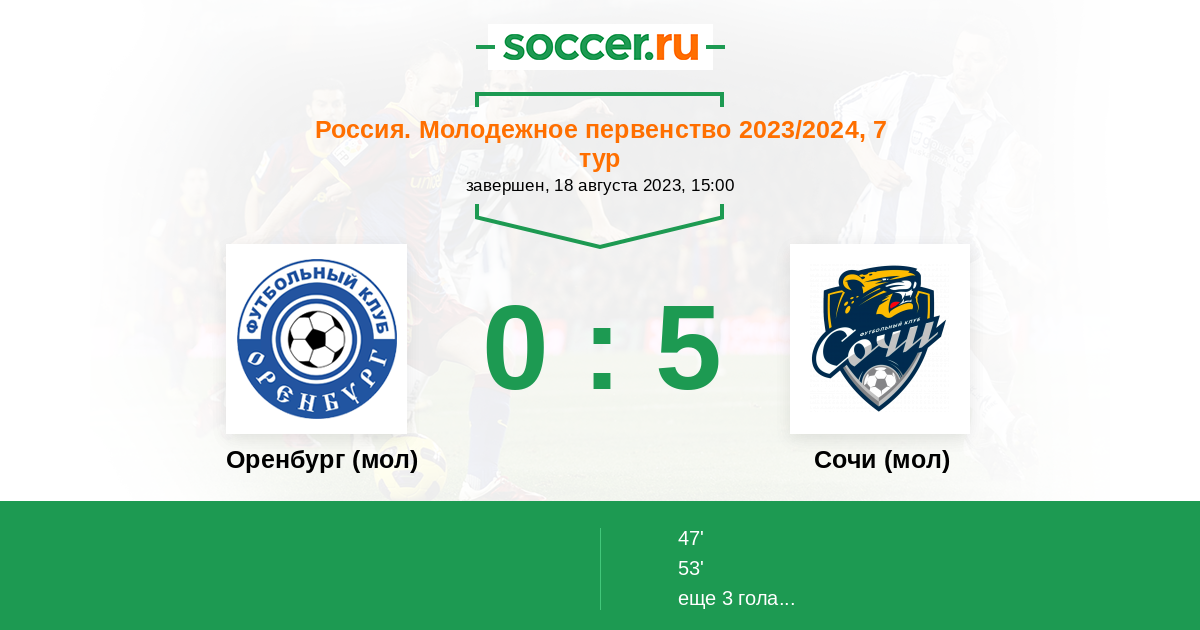 Оренбург (мол) - Сочи (мол): обзор матча 18 августа 2023