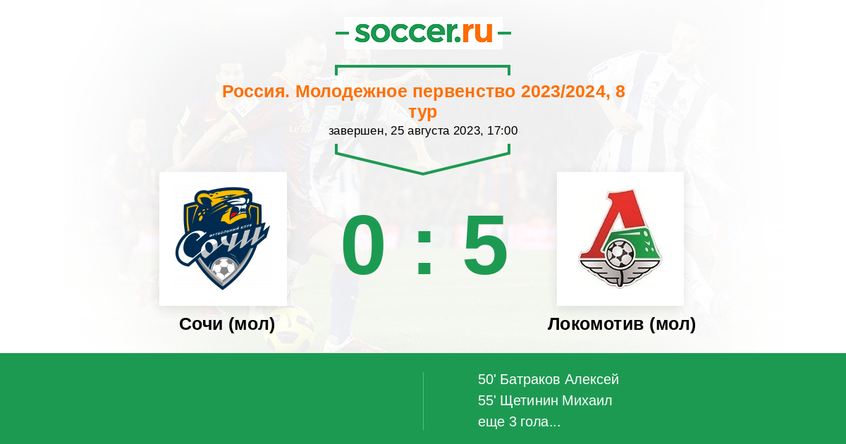 Сочи (мол) - Локомотив (мол): обзор матча 25 августа 2023