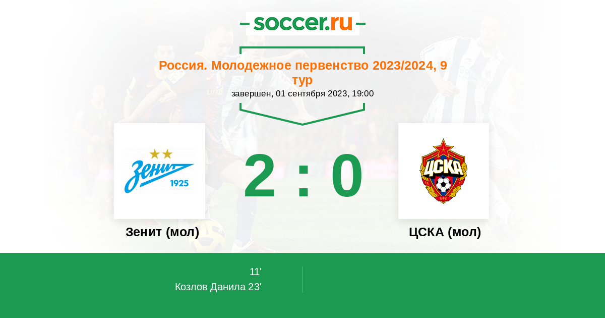 Зенит (мол) - ЦСКА (мол): обзор матча 1 сентября 2023
