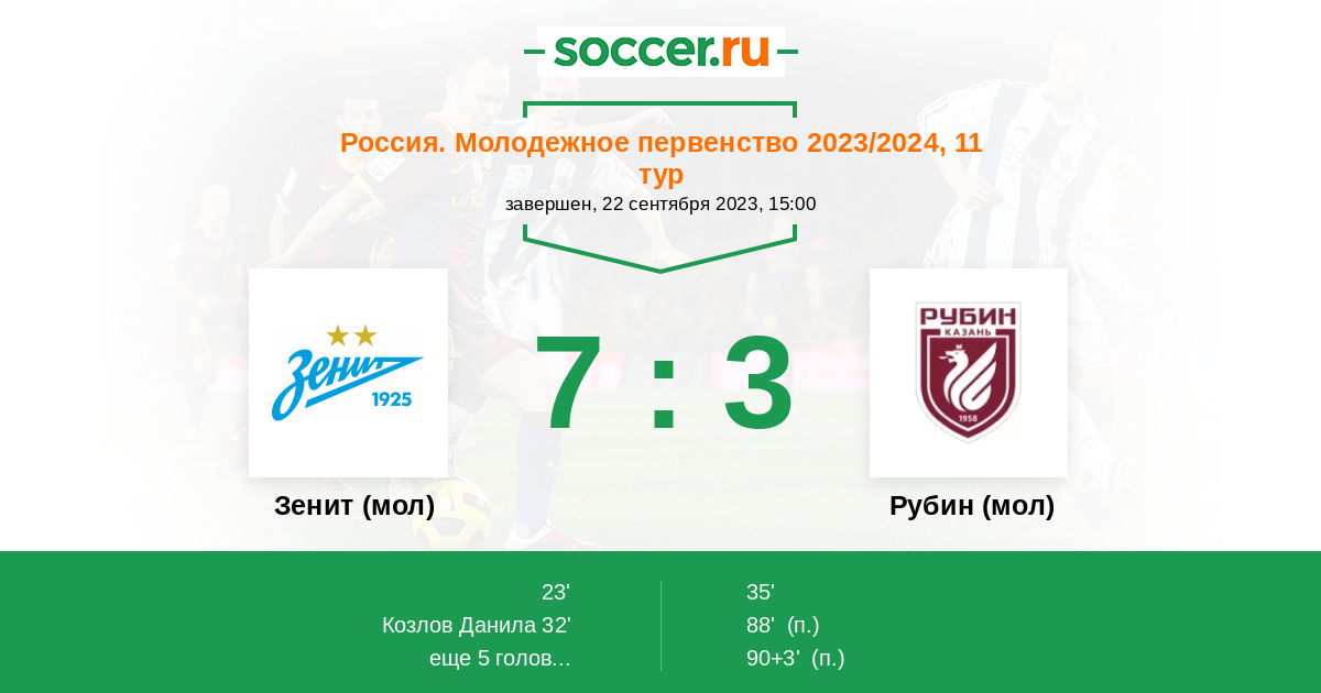 Зенит (мол) - Рубин (мол): обзор матча 22 сентября 2023