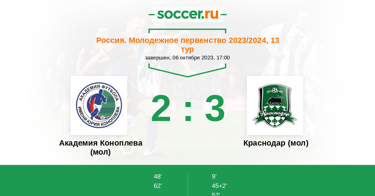 Академия Коноплева (мол) - Краснодар (мол): обзор матча 6 октября 2023