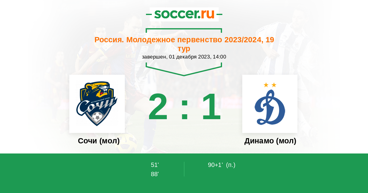Сочи (мол) - Динамо (мол): обзор матча 1 декабря 2023
