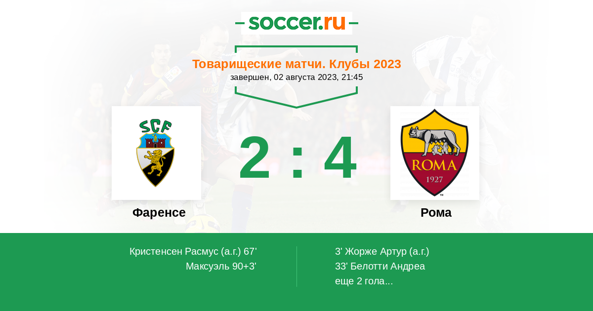 Фаренсе - Рома: обзор матча 2 августа 2023