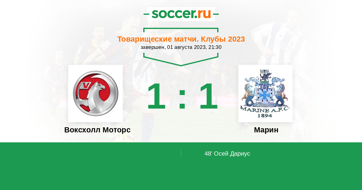 Воксхолл Моторс - Марин: обзор матча 1 августа 2023