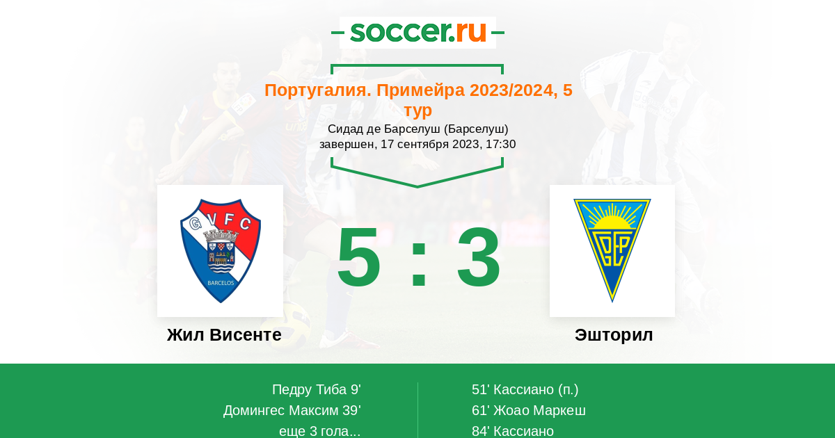 Жил Висенте - Эшторил: обзор матча 17 сентября 2023