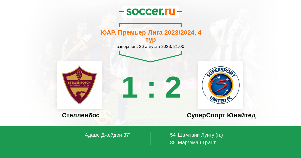 Стелленбос - СуперСпорт Юнайтед: обзор матча 26 августа 2023