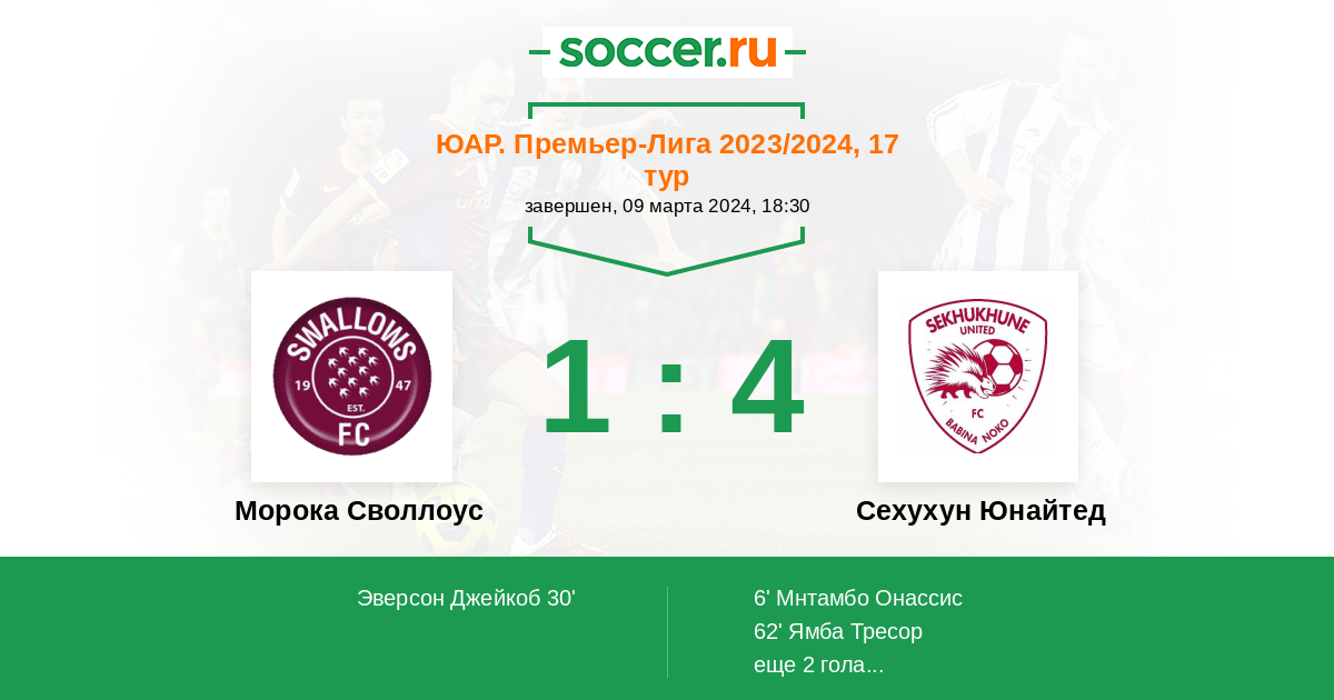 Морока Своллоус - Сехухун Юнайтед: обзор матча 9 марта 2024