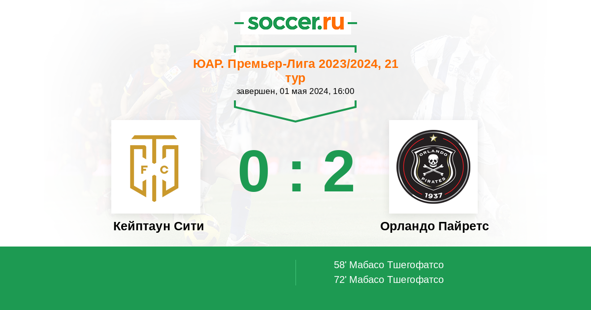 Кейптаун Сити - Орландо Пайретс: обзор матча 1 мая 2024