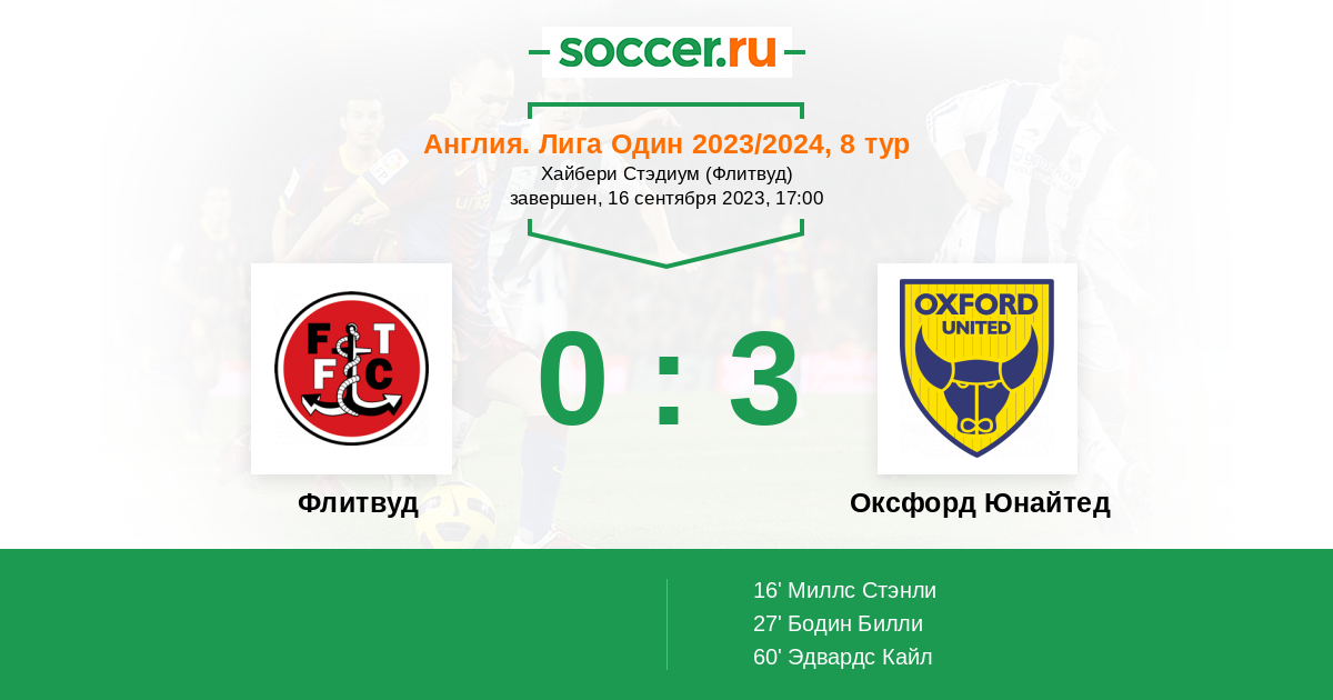 Флитвуд - Оксфорд Юнайтед: обзор матча 16 сентября 2023