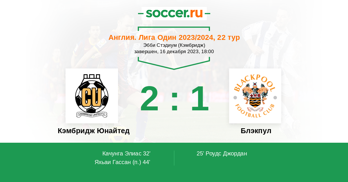 Кэмбридж Юнайтед - Блэкпул: обзор матча 16 декабря 2023