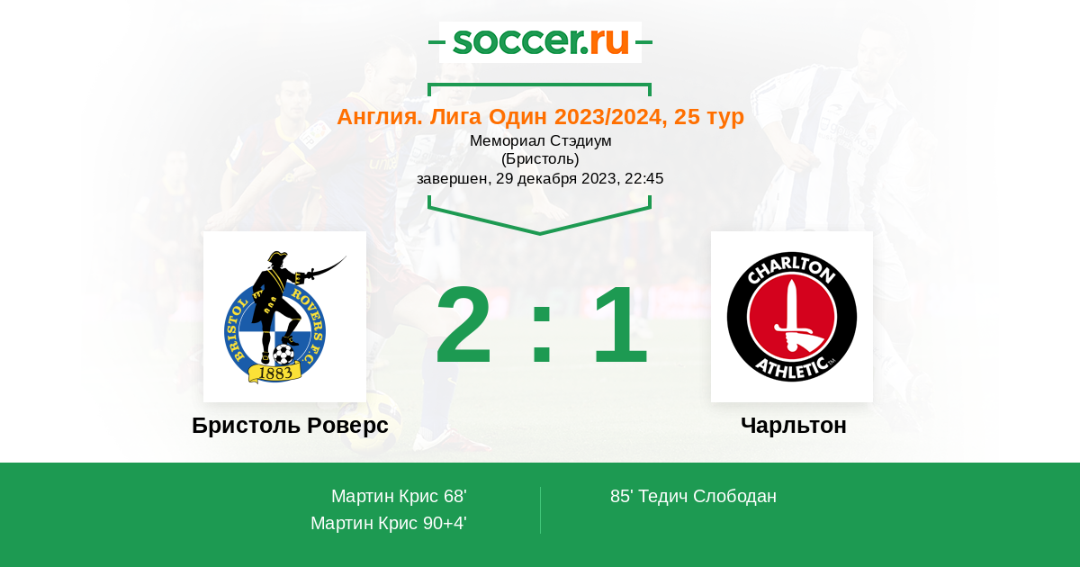 Бристоль Роверс - Чарльтон: обзор матча 29 декабря 2023