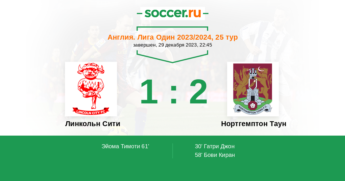 Линкольн Сити - Нортгемптон Таун: обзор матча 29 декабря 2023