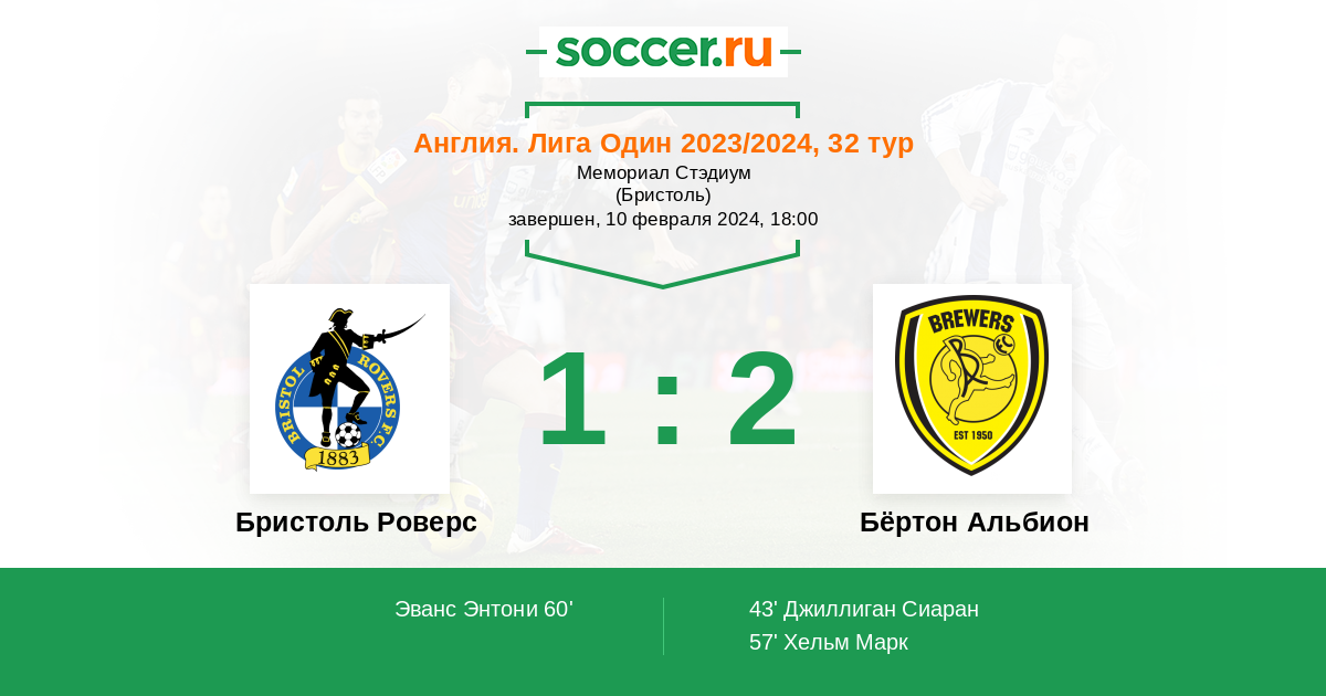 Бристоль Роверс - Бёртон Альбион: обзор матча 10 февраля 2024