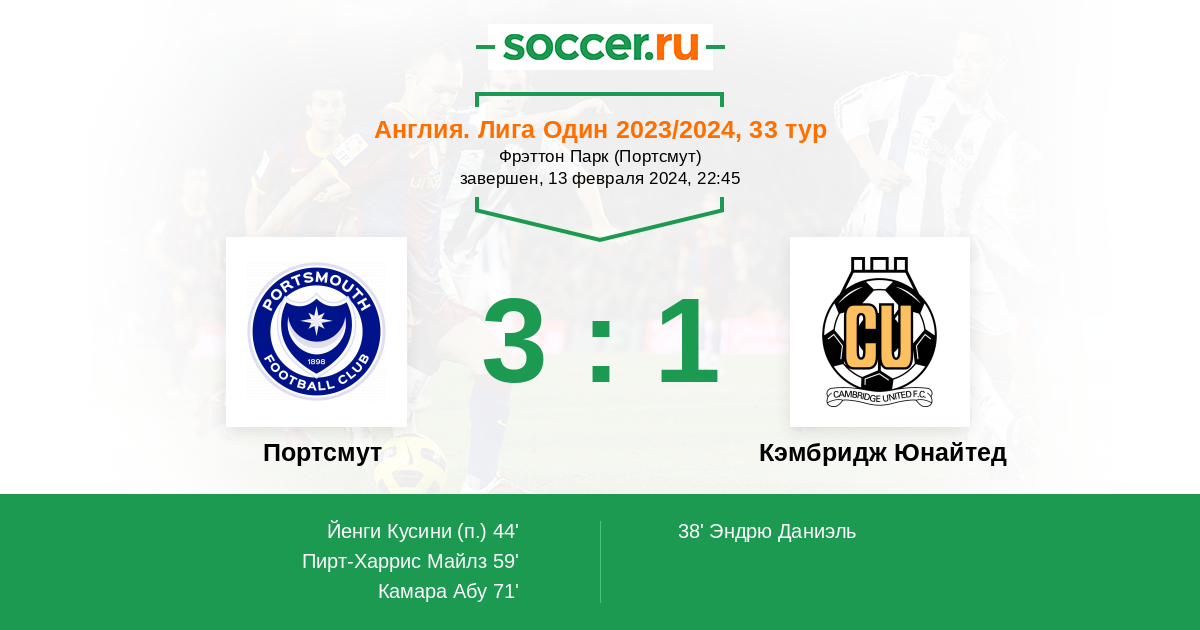 Портсмут - Кэмбридж Юнайтед: обзор матча 13 февраля 2024
